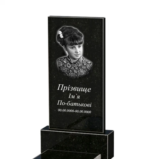 - Влаштування: з постаментом , зі стелою , без майданчика , з надгробною плитою , з неполірованими торцями надгробної плити , неполіровані фаски , 1 портрет ПІБ та дата