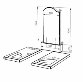 - Влаштування: з постаментом , зі стелою , без майданчика , з надгробною плитою , повне полірування сторін , поліровані фаски , 2 портрети, ПІБ з одним прізвищем та дати