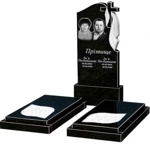 - Влаштування: з постаментом , зі стелою , без майданчика , з гробницею , повне полірування сторін , неполіровані фаски , 2 портрети, ПІБ з одним прізвищем та дати