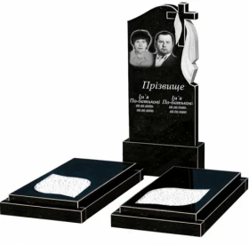 - Пам'ятник із граніту висотою 150 см подвійний із чорного граніту Коростишів з листом різьблена робота к22-kor-npf-120-60-08-142-r.
