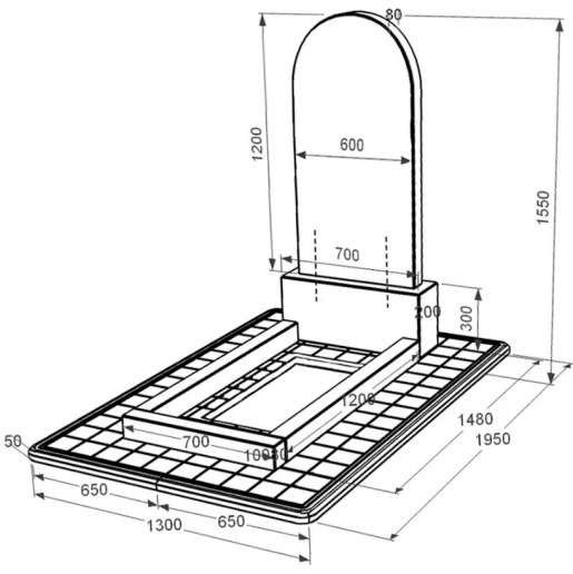 - Влаштування: з постаментом , зі стелою , з протиусадковою плитою , з квітником , повне полірування сторін , неполіровані фаски , з квітником без плити , 1 портрет ПІБ та дата