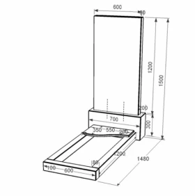- Габарити: В/Ш/Д 1500 х 700 х 1480 мм.