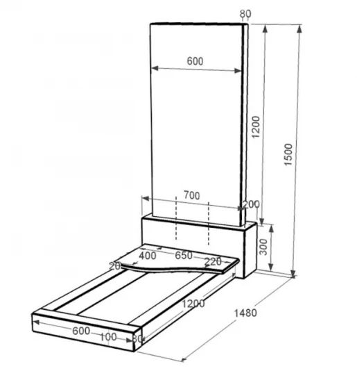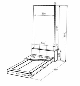 - Габарити: В/Ш/Д 1500 х 700 х 1480 мм.
