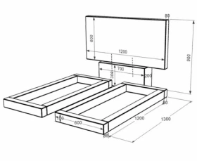 - Габарити: В/Ш/Д 900 х 1200 х 1560 мм.
