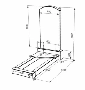 - Влаштування: з постаментом , зі стелою , без майданчика , з квітником , повне полірування сторін , поліровані фаски , з плитою на квітнику , 1 портрет ПІБ та дата