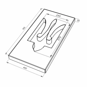 - Надгробкова плита замість квітника довжиною 80 см з граніту плита Тризуб із неполірованими фасками Коростишівського кар'єру праві pl-kor-npf-pt-80-40-05-TRIZUB.