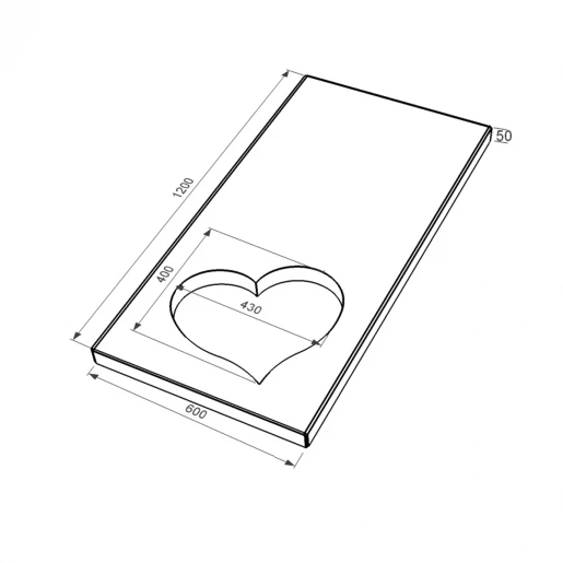 - Надгробна плита замість квітника шириною 60 см з граніту серія Серце із неполірованими фасками Коростишівського кар'єру ліві pl-kor-npf-pt-120-60-05-SERCE-l.